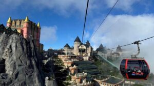 Téléphérique + visite Sun World Ba Na Hills. Profitez d’une journée complète dans ce parc à thème situé sur les hauteurs de Da Nang. Inclut l’accès au Golden Bridge, aux jardins français et au parc d’attractions Fantasy Park.
